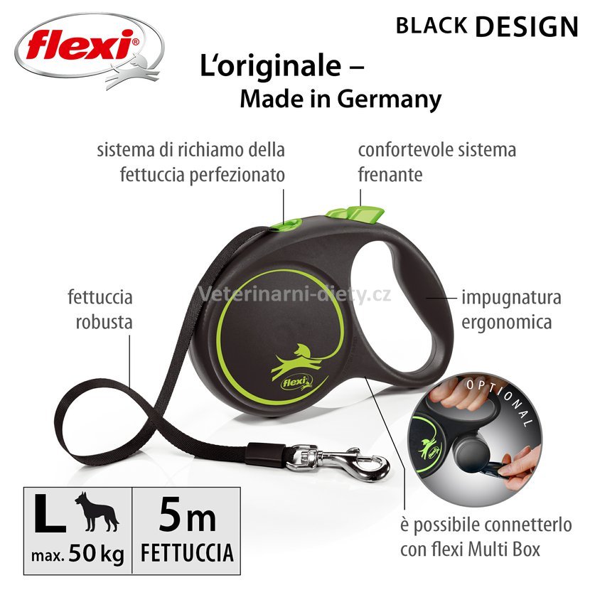 Vodítko FLEXI black Design L pásek 5m/50kg zelená